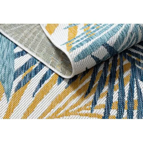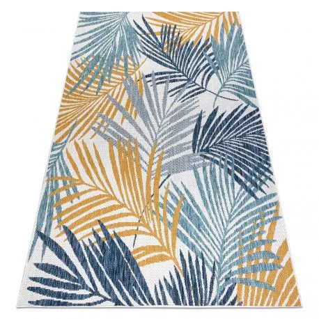 TOP! Kab. Fonott sizal szőnyeg COOPER pálmalevelek, tropikus 22258 ecru / sötétkék 120x170 cm