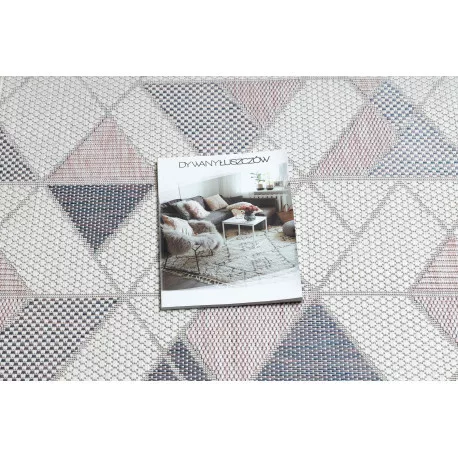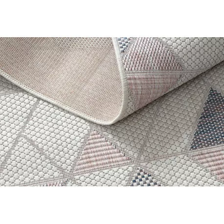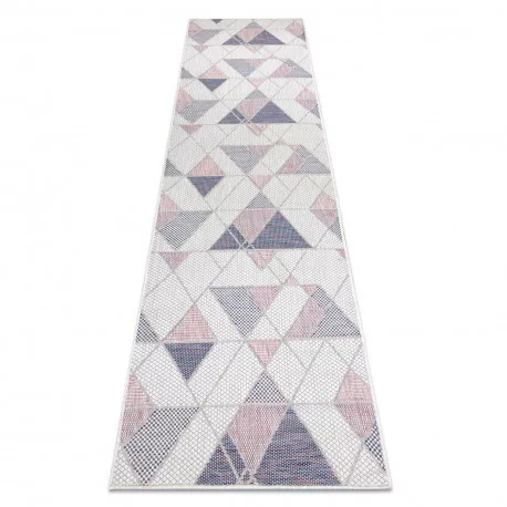 TOP! Kab. Fonott sizal szőnyeg SION futószőnyeg Geometriai, háromszögek 3006 lapos szövött ecru / rózsaszín 60x200 cm