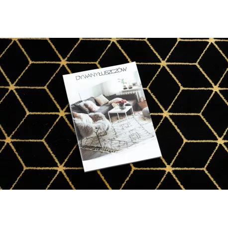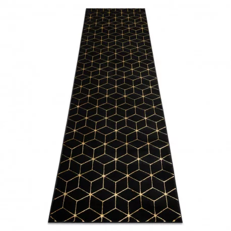 TOP! Kab. Modern GLOSS szőnyeg, futószőnyeg 409C 86 Kocka elegáns, glamour, art deco fekete / arany 60x300 cm